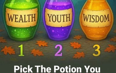 Imagine walking through a mystical forest, where three glowing potions sit on a stone altar under a canopy of enchanted…