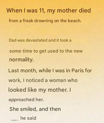 She looked exactly like my mother. The same eyes, the same way she tucked her hair behind her ear. My heart pounded as I followed her, battling between disbelief and a desperate hope I couldn't explain.