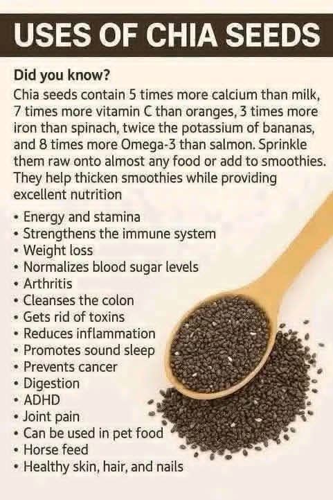 Chia seeds can be your built-in appetite control system and all thanks to their high fiber content. These can provide you with nearly 10 grams per ounce; they expand in your stomach, while forming a gel-like texture that keeps you feeling full for hours.This trait of chia seed will help you curb cravings and help you manage your weight by avoiding constant snacking. They also help regulate blood sugar levels by slowing down how fast your body digests carbs. That means fewer spikes and crashes, which leave you feeling steady and energized throughout the day.Best Way To Use: Soak one tablespoon of chia seeds in a glass of water or milk for 15–20 minutes and drink it before breakfast. It’s simple and perfect for kickstarting your metabolism. You can also try peppermint oil for this.2. Boost Heart HealthWhen it comes to your heart, chia seeds are a quiet hero. They are rich in omega-3 fatty acids, which help reduce bad cholesterol and inflammation, two major culprits behind heart disease. If you go for regular consumption, it can help you maintain healthy blood pressure and improve your overall cholesterol profile.Plus, these tiny seeds will help your heart run smoothly, like good-quality oil in an engine. Just mix chia seeds into your morning smoothie or sprinkle them over oatmeal. They blend seamlessly and add a subtle crunch to your meals.Pro Tip: You can pair chia with foods high in vitamin E, like almonds or avocados. The combo enhances antioxidant protection for your heart.3. Support Healthy DigestionIf your digestive system needs a little tune-up, chia seeds are your go-to. As mentioned, their soluble fiber will absorb water and turn into a gel-like substance that will soften your stool and keep things moving smoothly!The fiber also acts as a prebiotic, which feeds the good bacteria in your gut. A healthy gut microbiome means better nutrient absorption, less bloating, and overall digestive harmony. You should add soaked chia seeds to yogurt or kefir, as the probiotics plus fiber combo improves your gut health.4. Strengthen Bones and JointsBelieve it or not, chia seeds are loaded with bone-building nutrients. Just two tablespoons will provide you with more calcium than a glass of milk. It also has magnesium, phosphorus, and protein, which are essential for maintaining strong bones and joints.These nutrients will help keep your skeletal system sturdy and support cartilage health, which means less stiffness and better mobility over time. Perfect if you are active or just looking to age gracefully.Pro Tip: Combine chia with sesame seeds or tahini, and you will see how they complement each other’s mineral content and make a powerful bone-strengthening blend.5. Improve Skin and Hair HealthGlowing skin and shiny hair start from the inside, and chia seeds can help you get there. The omega-3 fatty acids in chia seeds will reduce inflammation, which can calm your acne and redness, while antioxidants will fight free radicals that cause premature aging.There is more! The high protein content in chia seeds also promotes keratin production, which makes your hair stronger and your skin more elastic and youthful. You will start to notice that post-glow look after consistent use.Pro Tip: For a beauty boost, pair chia with vitamin C-rich foods like berries. It will amplify collagen production for firmer skin. Wait, have you heard of beef tallow? Here’s what it can do for your skin!6. Stabilize Blood Sugar LevelsIf you are tired of energy crashes after meals, chia seeds can help with that. The soluble fiber and healthy fats in chia slow down carbohydrate digestion, which prevents sudden spikes in blood sugar levels.This steady energy release will keep you focused and satisfied throughout the day. It’s beneficial for people managing insulin resistance or those looking to balance their meals more effectively. You should try soaking chia in unsweetened almond milk overnight, as it is a simple, low-sugar way to stabilize glucose while still tasting delicious.Adding chia seeds to your daily diet can truly transform how your body feels and functions. So go ahead and make these seeds your