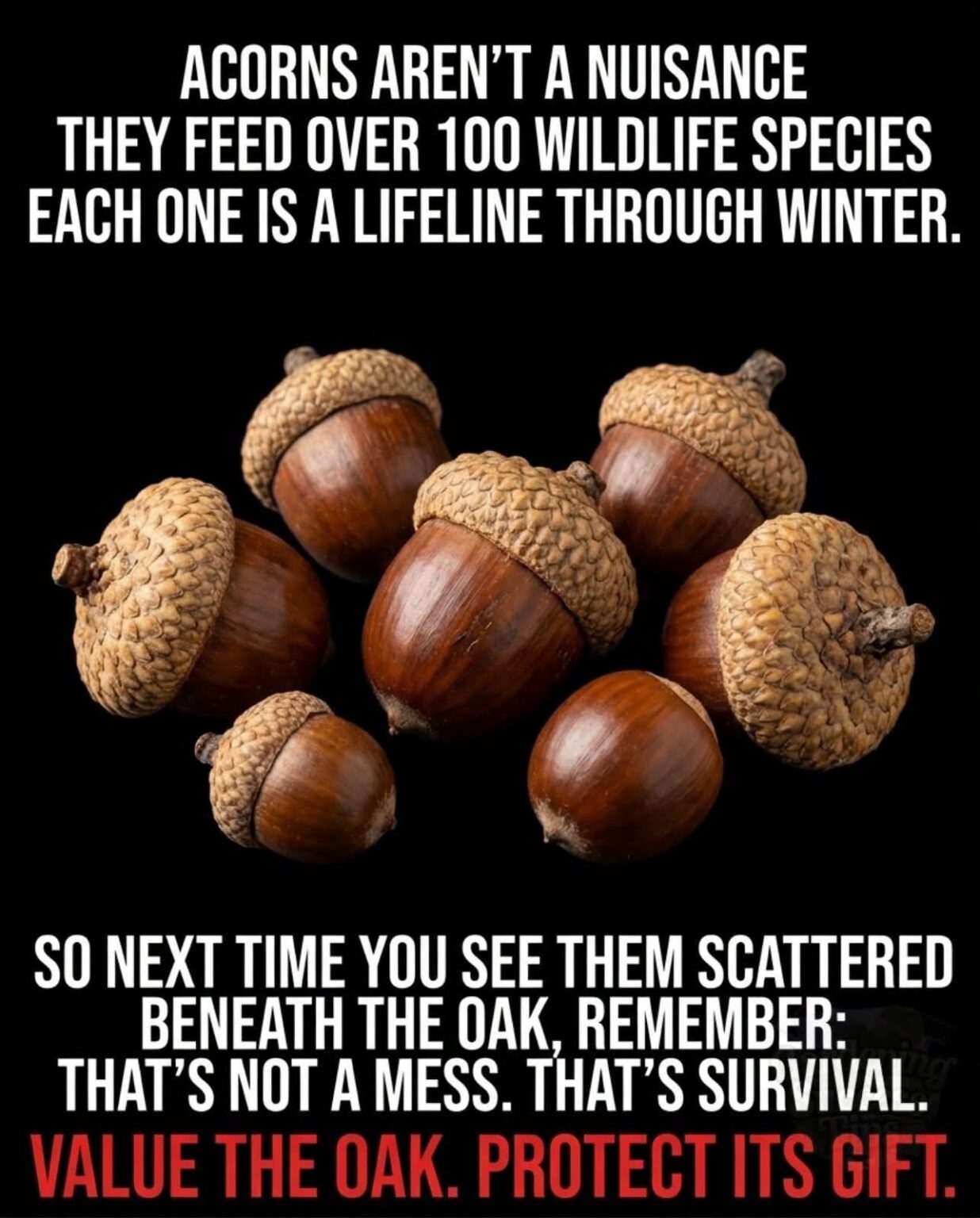 Every autumn, oak trees release thousands of acorns that scatter across yards, forests, and fields. To many homeowners, they look like clutter—something to rake up and discard. But to wildlife, each acorn is a lifeline.